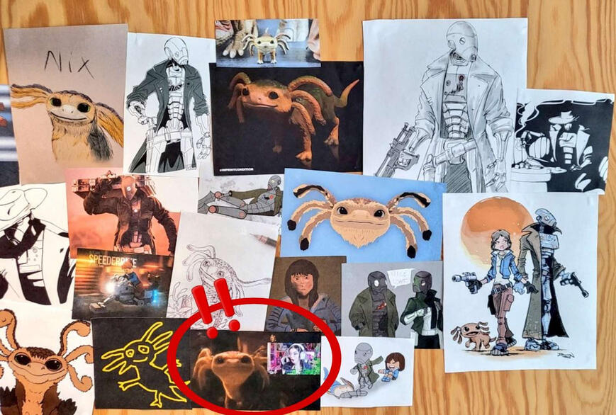 A screenshot of my reaction to the reveal of Star Wars Outlaws has been featured on the wall at Ubisoft! (photo creds: @phatseejay)