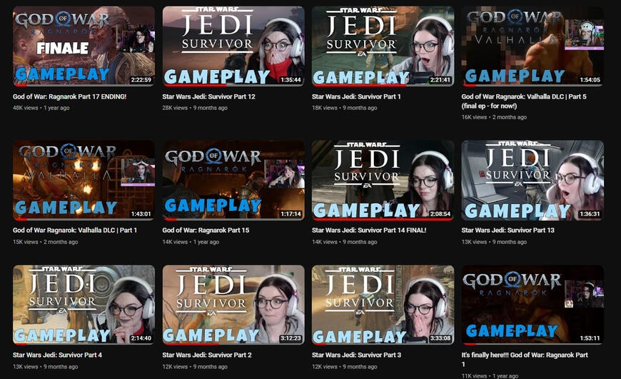 The second, pictured below, shows my most popular gaming VODs. It can be found here: https://www.youtube.com/louisejuliegaming