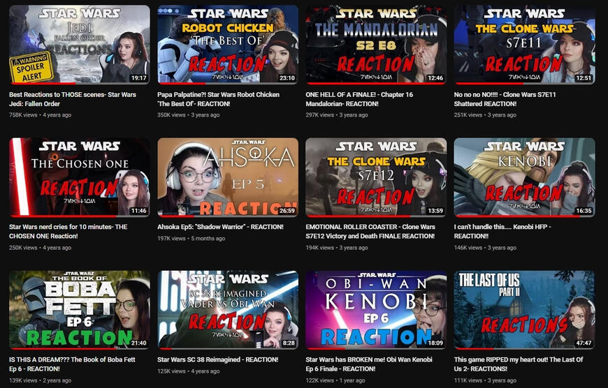 The first, pictured above, shows my most popular reaction videos. It can be found here: https://youtube.com/louisejulie